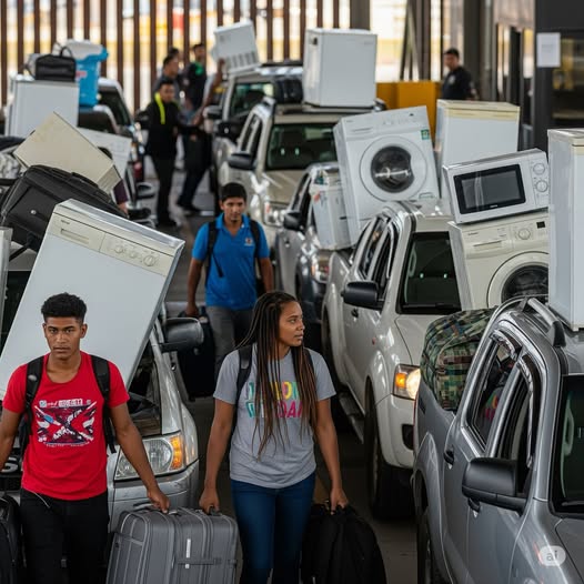 아르헨티나로 돌아오는 자동차마다 칠레에서 구입한 백색가전이 가득 실려 있다. (출처: 현지 SNS)